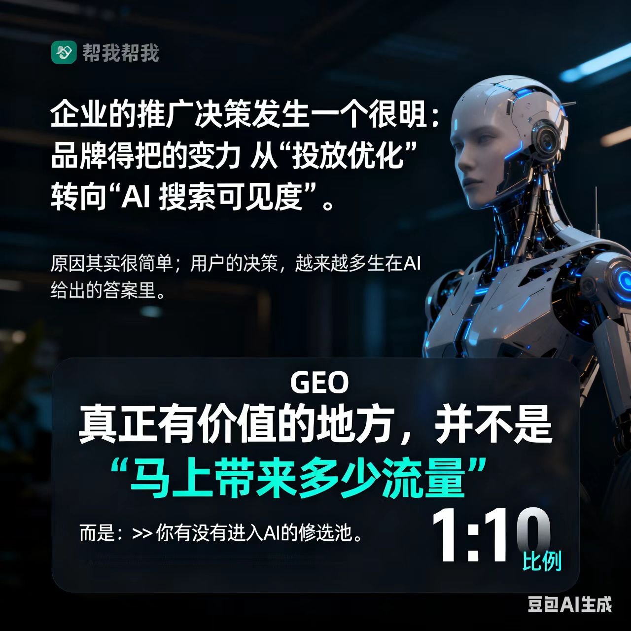 当AI大模型重构互联网流量格局,AI搜索从“人找信息”迭代为“AI推答案”的全新逻辑,一场关于流量入口的争夺战已然打响。数据显示,2025年中国GEO(生成式引擎优化)市场规模已突破480亿元,年复合增长率达68%,超78%的企业将其纳入核心增长战略,而GEO优化作为抢占AI搜索流量的核心手段,正成为企业数字化转型的必选项。立足武汉、辐射全国,武汉得知网络科技有限公司凭借十年数字化服务积淀,以自主研发的GEO技术为核心,推出适配多行业、全链路的GEO优化服务,为武汉乃至全国企业搭建起通往AI流量红利的黄金通道,成为华中地区GEO优化服务的标杆力量。